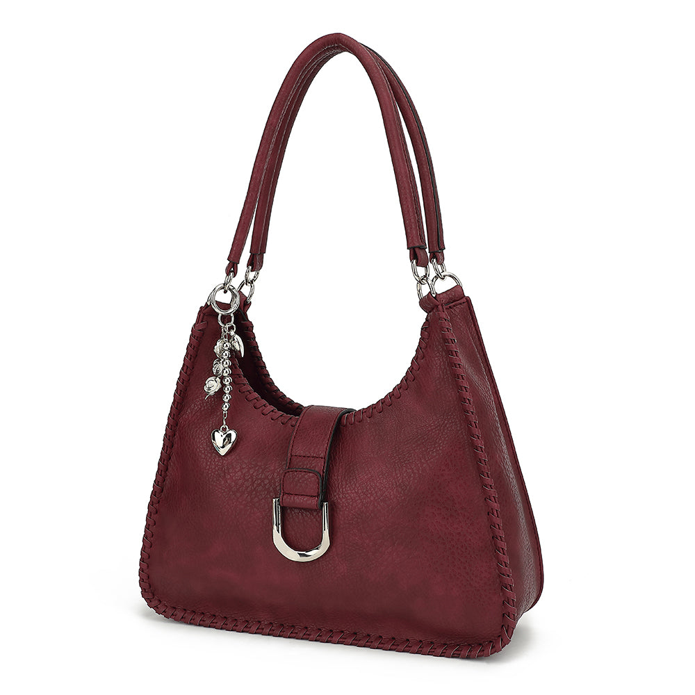 DOUBLE HANDLE SATCHEL WITH WHIPSTITCH DETAIL AND CHARM 24925