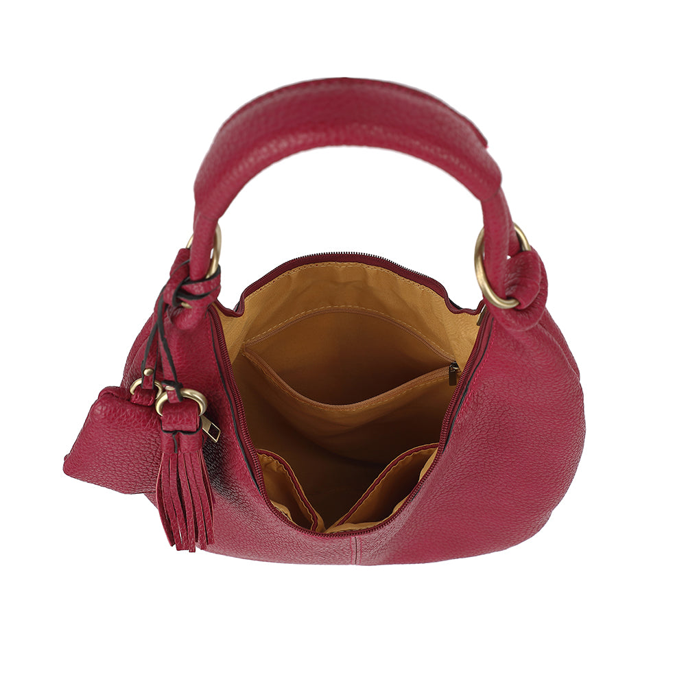 Inside lined with 1 zip and 2 open pockets